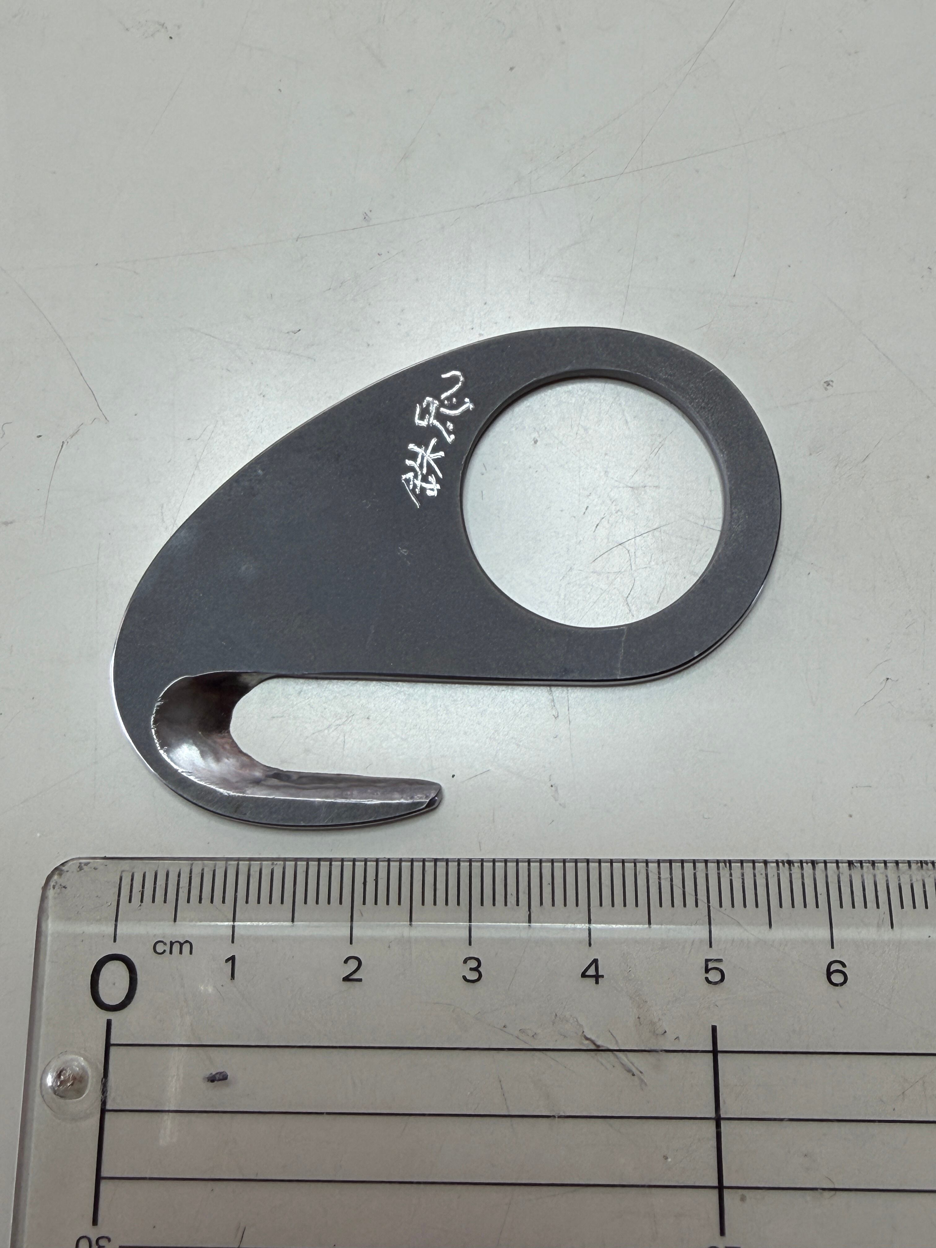 ・フック型の刃が特徴のこのナイフは、縄をスムーズにカットできるようデザインしています。
